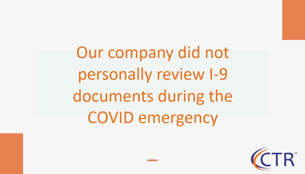 Our company did not personally review I-9 documents during the COVID emergency