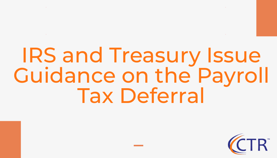 IRS AND TREASURY ISSUE GUIDANCE ON THE PAYROLL TAX DEFERRAL