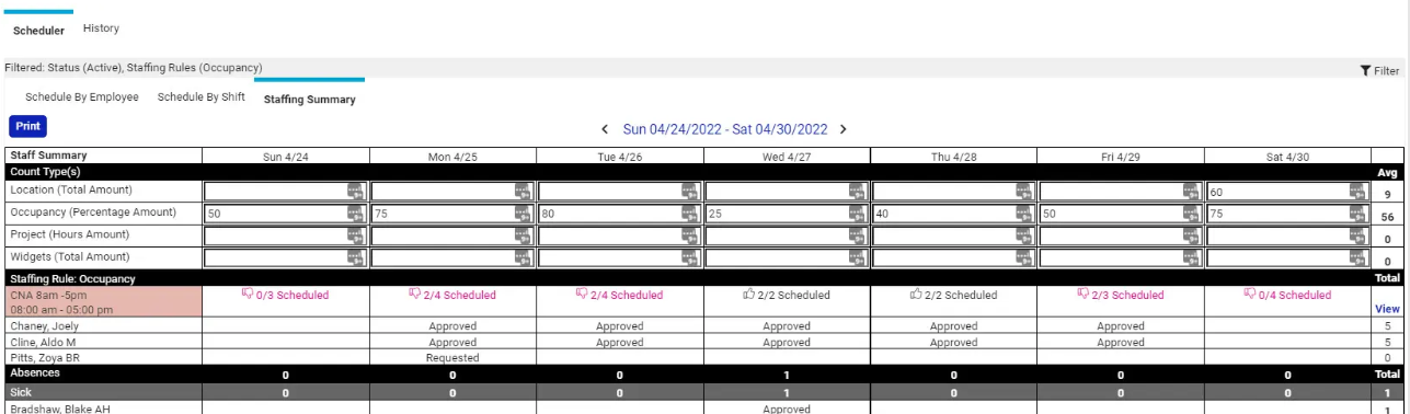 Set customizable staffing values such as hours, occupancy percentages, or other criteria.